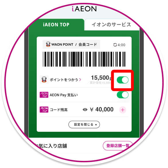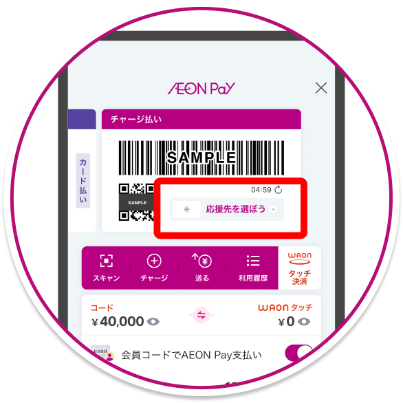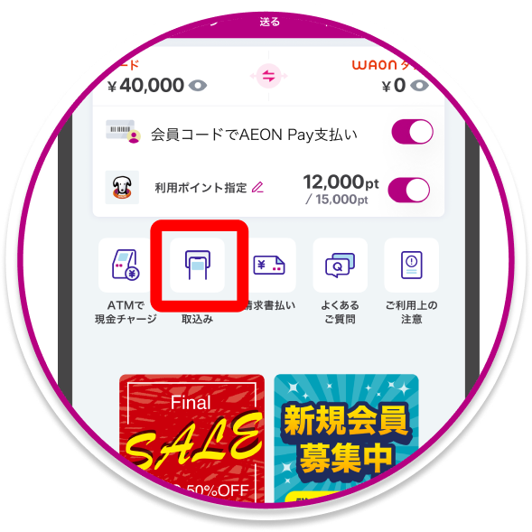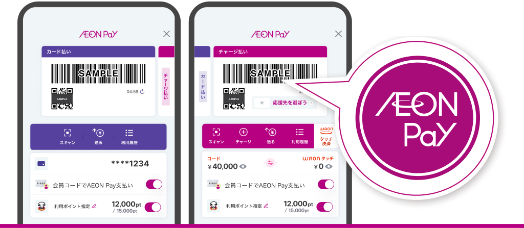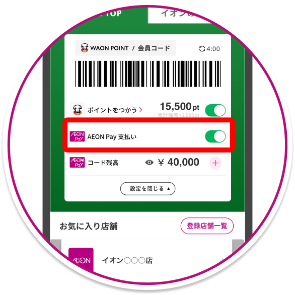 ※WAONタッチの残高は表示されません。AEON Pay画面からご確認ください。
