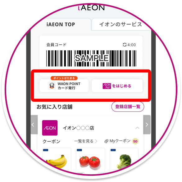 ポイント利用またはAEON Payご利用ご希望の場合は対象のカードを登録するか、新規発行してご利用ください。