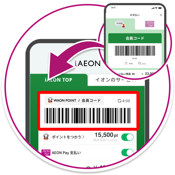 ※板WAONカードの残高はコード払いの残高に移行されます。