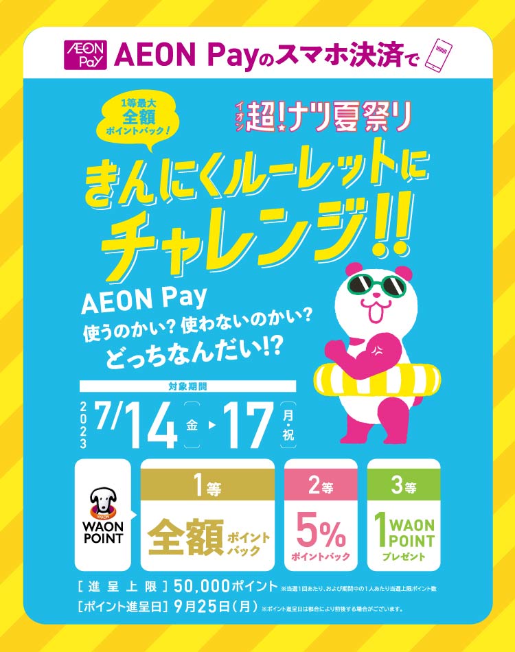 期間中に対象店舗でAEON Payのご利用で、抽選で最大全額ポイントバック!