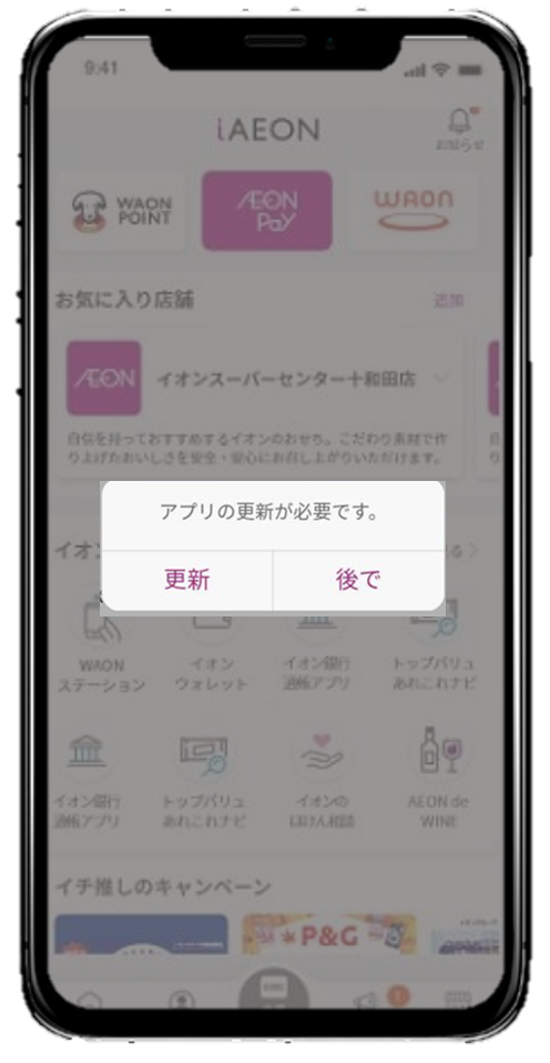 3月21日(木)「iAEON 最新バージョンアップデートご案内」メッセージを表示いたします