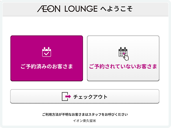チェックイン完了後、出力されたチェックインレシートを受け取り、店頭スタッフへ提示のうえラウンジへご入室ください。