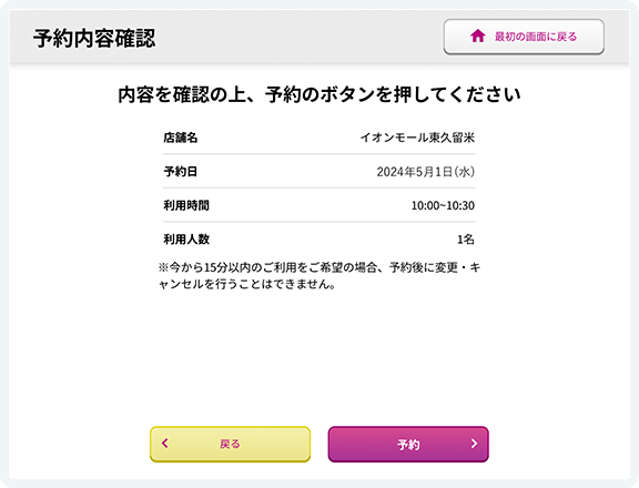 予約内容を確認し、「予約」をタップしてください。