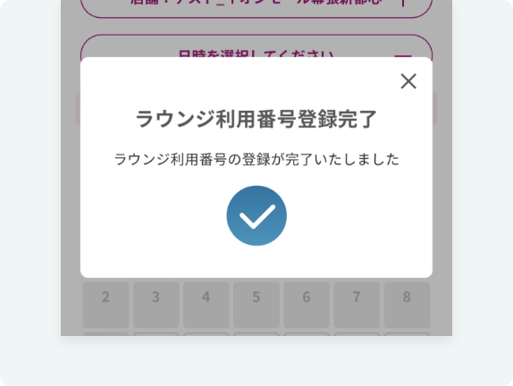 ラウンジ利用番号登録完了