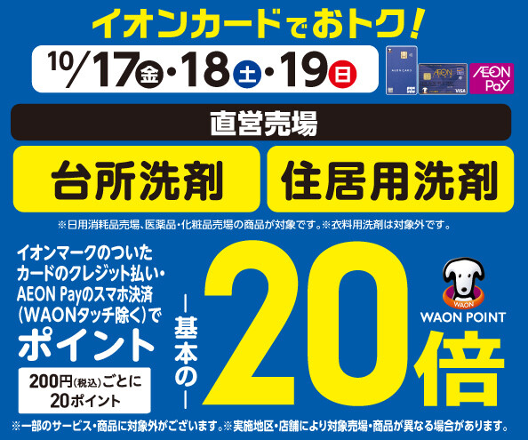 台所洗剤・住居用洗剤の各売場でWAON POINT基本の20倍!