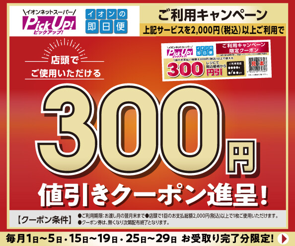 【イオンネットスーパー】PickUp!・即日便ご利用キャンペーン!