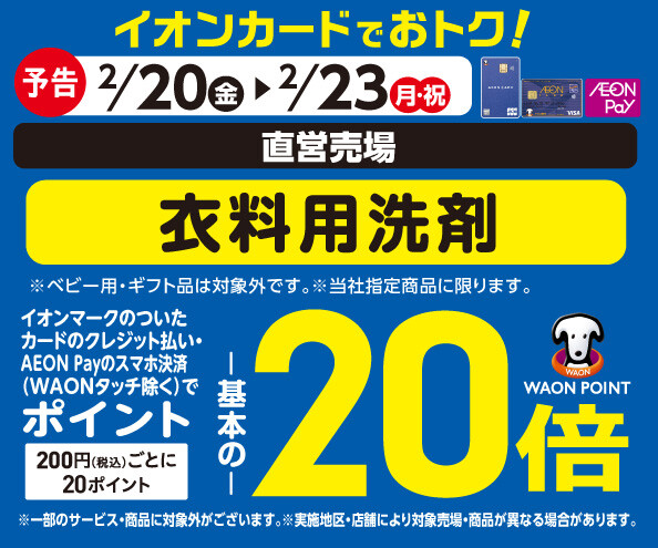 【予告】衣料用洗剤の各売場でWAON POINT基本の20倍!