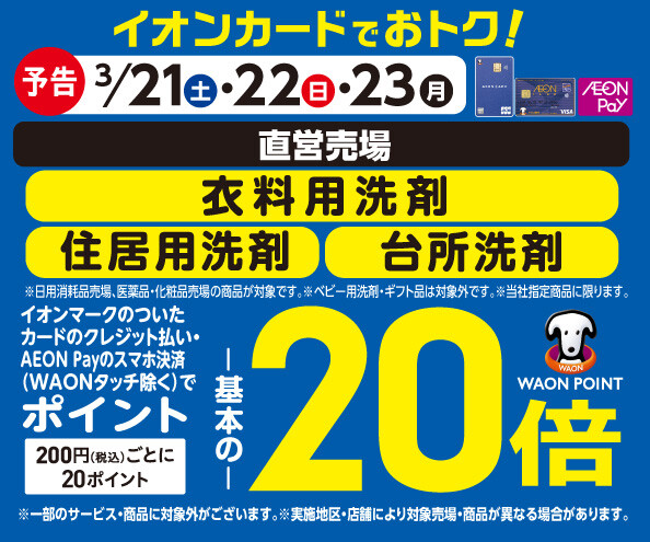 【予告】洗剤の各売場でWAON POINT基本の20倍!