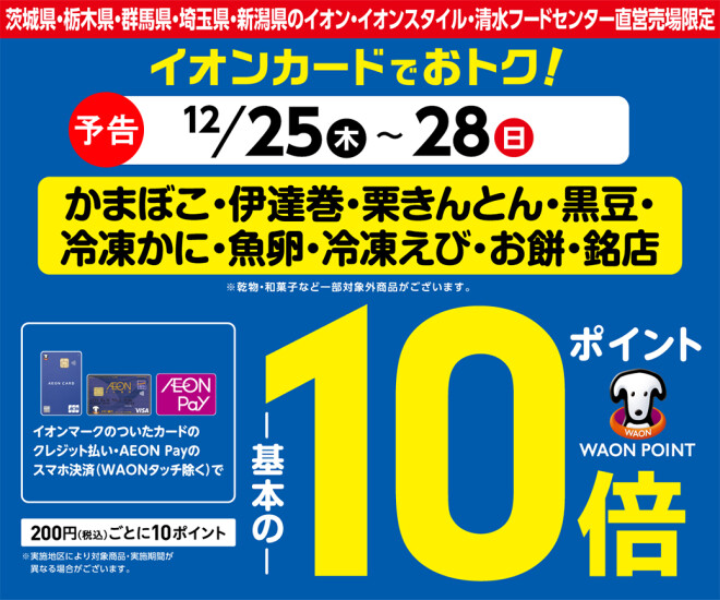 【予告】12/25~12/28まで対象商品をイオンカード・AEON Payのスマホ決済でおトク!