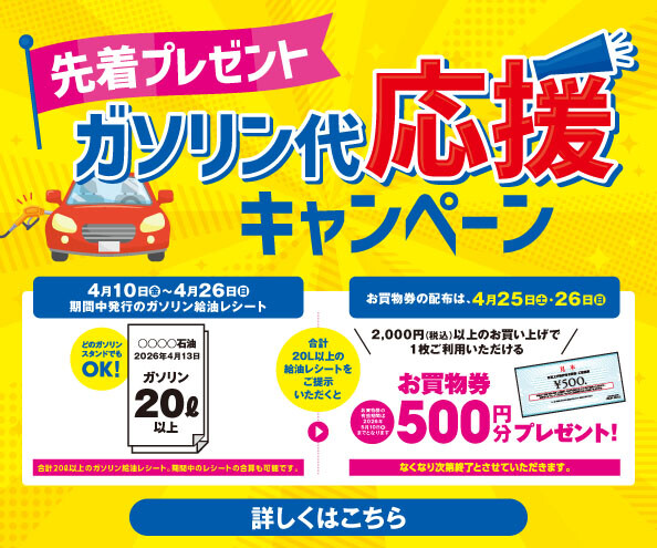 ガソリン代応援キャンペーン ~先着プレゼント!~