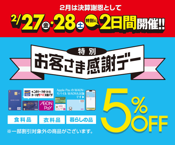 特別お客さま感謝デー ~2月27日・28日 特別に2日間開催!~
