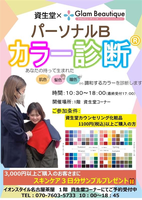 資生堂コーナー直通 070-7603-5733 (入店時間10時〜18時30分)