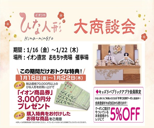 イオンスタイル岡山のおもちゃ売場では 1/16(金)~1/22(木)の期間限定で