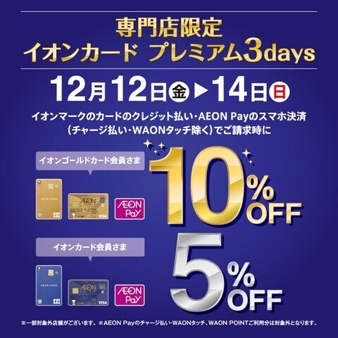 ※イオンマークのカードのクレジット払い(イオンJMBカード含む)、AEON Payのスマホ決済(イオンカード払い)、イオンiD、イオンマークのカードを登録したApple Payが対象になります。