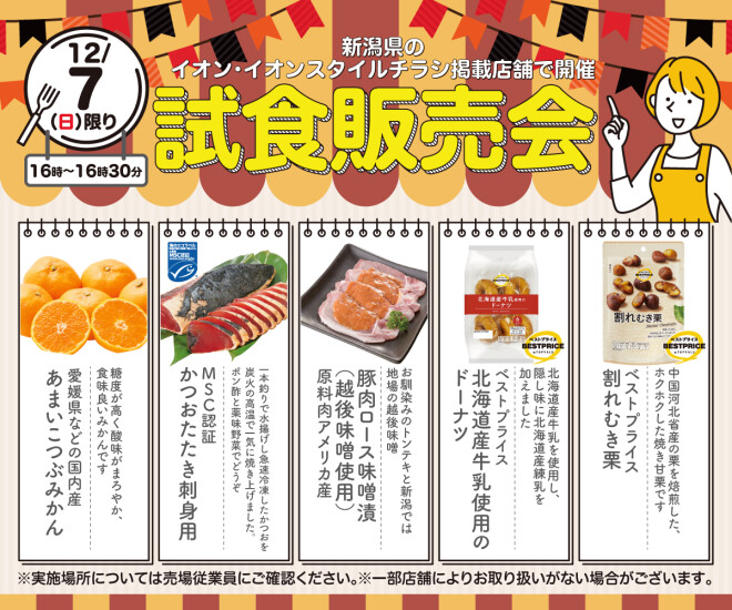 【このお知らせが表示されてる店舗限定】12/7(日)16時~16時30分『試食販売会』開催!