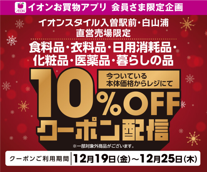【イオンスタイル入曽駅前・白山浦】10%OFFアプリクーポン配信!