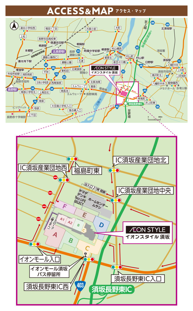 長電バス 須坂屋島線・屋代須坂線「イオンモール須坂」バス停より徒歩すぐ