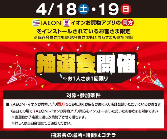 4/18(土)・3/19(日) iAEONアプリ・お買物アプリ抽選会のご案内!
