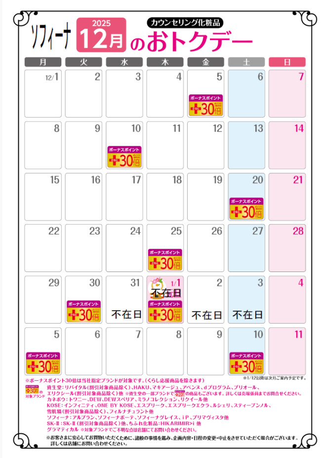 ※入店時間・不在日は諸事情により変更になる場合がございます。