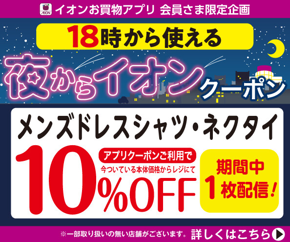 18時から使える夜からイオンクーポン~メンズドレスシャツ10%OFF~