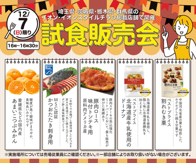 【このお知らせが表示されてる店舗限定】12/7(日)16時~16時30分『試食販売会』開催!