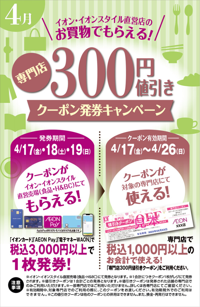 専門店:300円値引きクーポン発券キャンペーン♪ (26年4月)