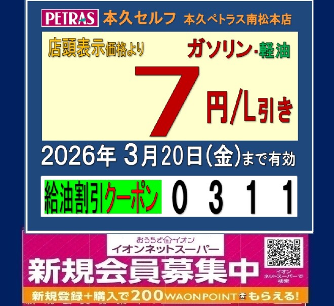 【イオンお買物アプリ】お得市クーポン配信!