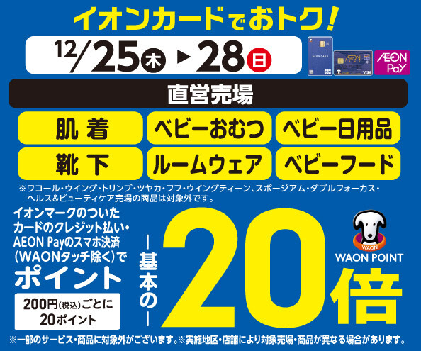 肌着・ベビー日用品の各売場でWAON POINT基本の20倍!