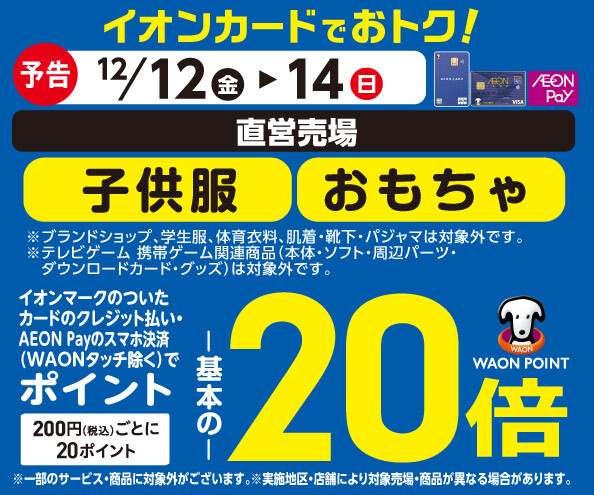 【予告】子供服・おもちゃの各売場でWAON POINT基本の20倍!
