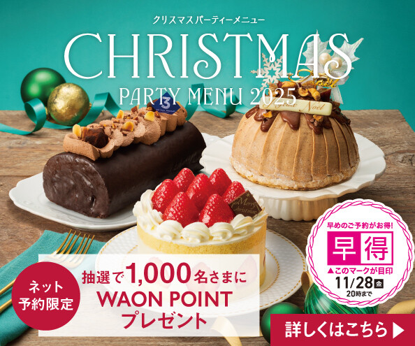 クリスマスケーキ・パーティーメニュー~早めのご予約お得!~