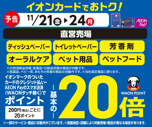 【予告】日用消耗品・医薬品の各売場でWAON POINT基本の10倍!
