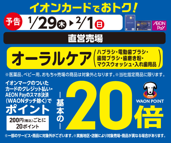 【予告】オーラルケアの各売場でWAON POINT基本の20倍!