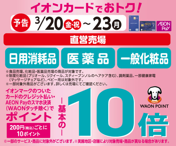 【予告】日用消耗品の各売場でWAON POINT基本の10倍!