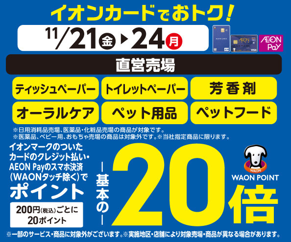 芳香剤・オーラルケアの各売場でWAON POINT基本の20倍!