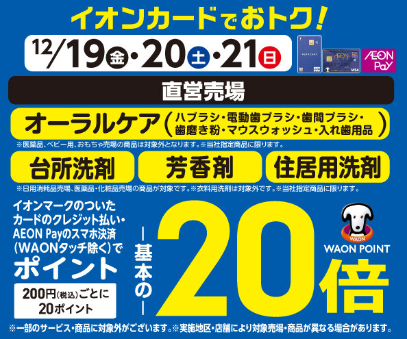 オーラルケア・台所洗剤の各売場でWAON POINT基本の20倍!
