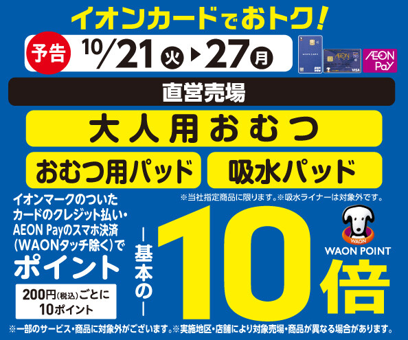 【予告】大人用おむつの各売場でWAON POINT基本の10倍!