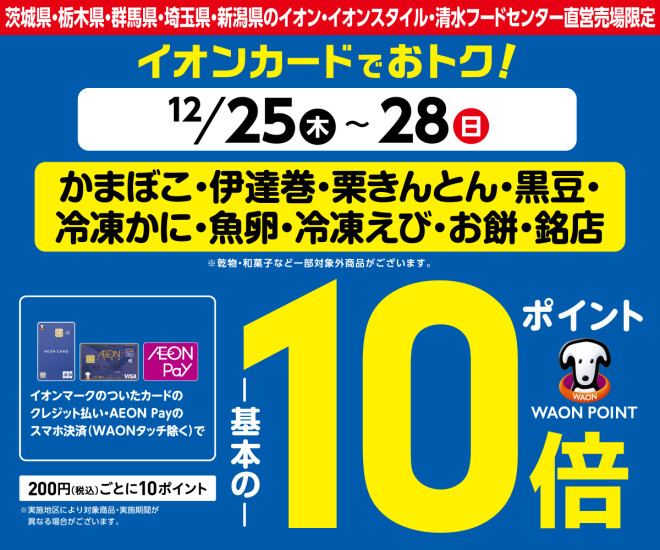 12/25~12/28まで対象商品をイオンカード・AEON Payのスマホ決済でおトク!