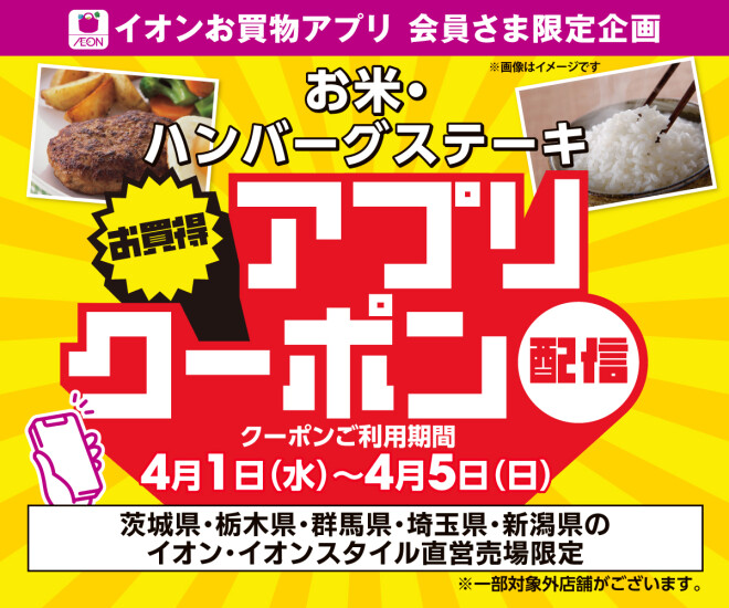 お米・ハンバーグステーキ アプリクーポン配信!