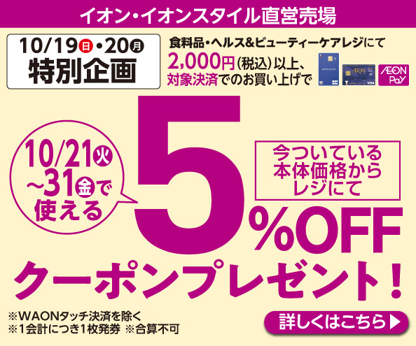 10/21(火)~31(金)で使える5%OFFクーポンプレゼント!