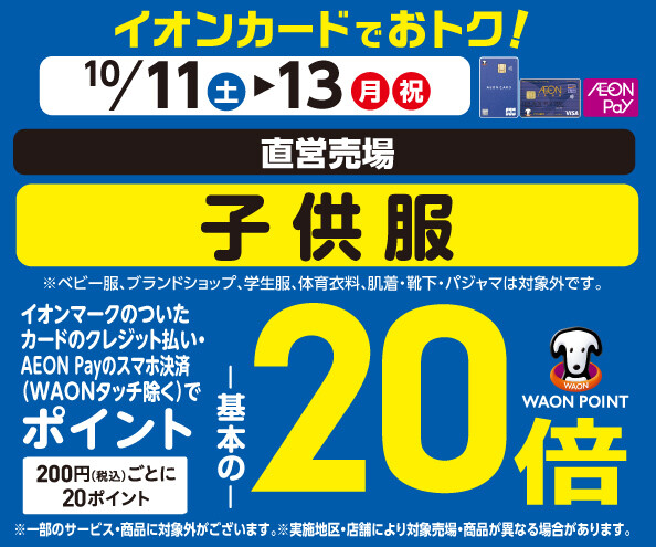 子供服の各売場でWAON POINT基本の20倍!