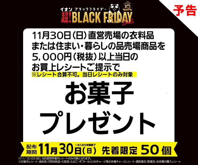 【予告:このお知らせが表示されてる店舗限定】対象の売場で5,000円(税込)以上お買い物してお菓子プレゼント!