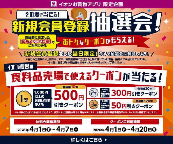 【イオンお買物アプリ】新規会員登録抽選会!