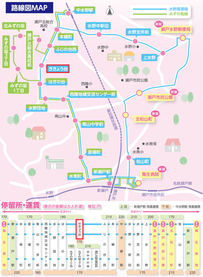 名鉄バス「みずの循環バス」乗車⇒「ききょう台」下車すぐ