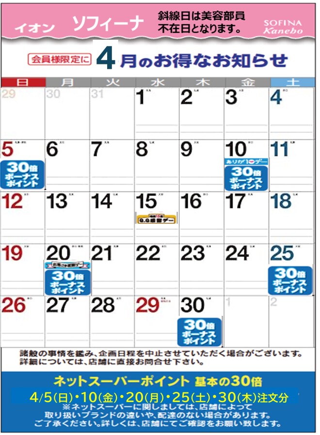 【 ソフィーナからのお知らせ 】