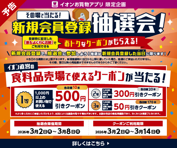 【予告】【イオンお買物アプリ】新規会員登録抽選会!