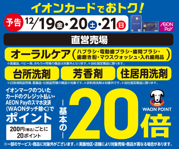 【予告】オーラルケアの各売場でWAON POINT基本の20倍!