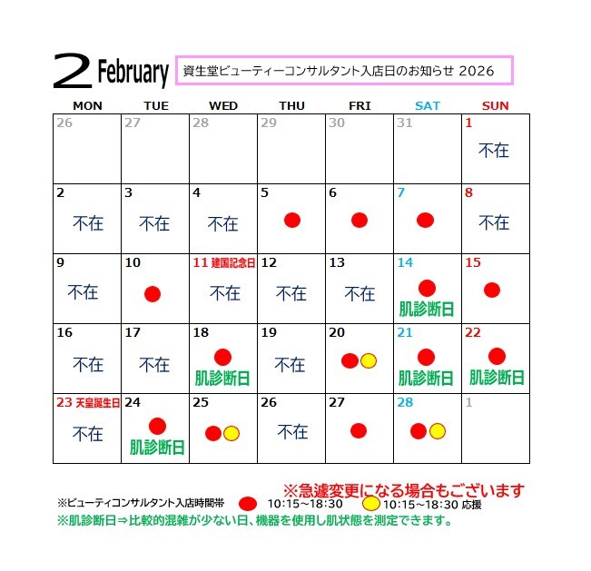 2月度資生堂入店カレンダー