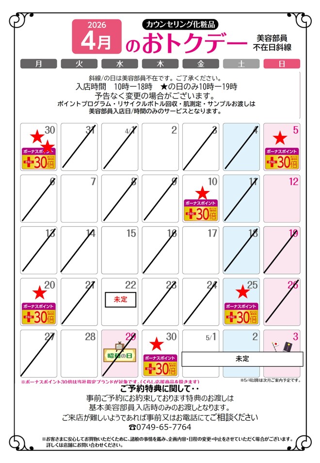 カウンター直通☎️0749-65-7764