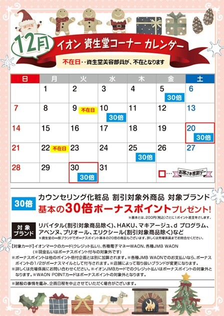【資生堂:美容部員入店日のご案内】