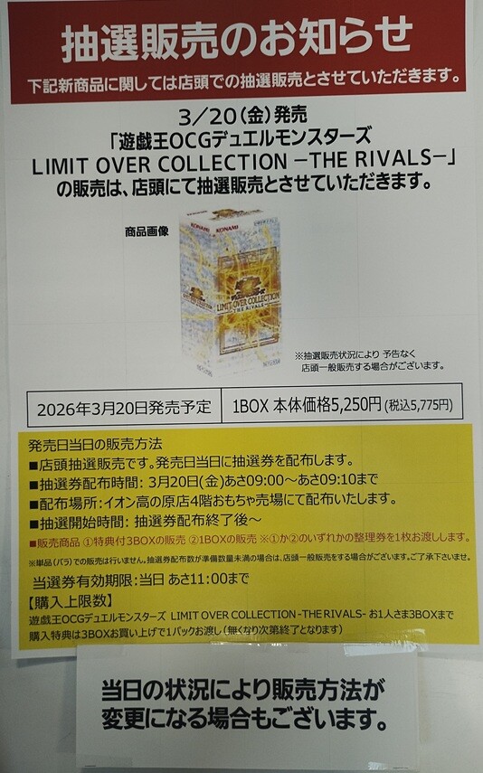 3/20発売「遊戯王OCGデュエルモンスターズ LIMIT OVER COLLECTION-THE RIVALS-]抽選販売のお知らせ